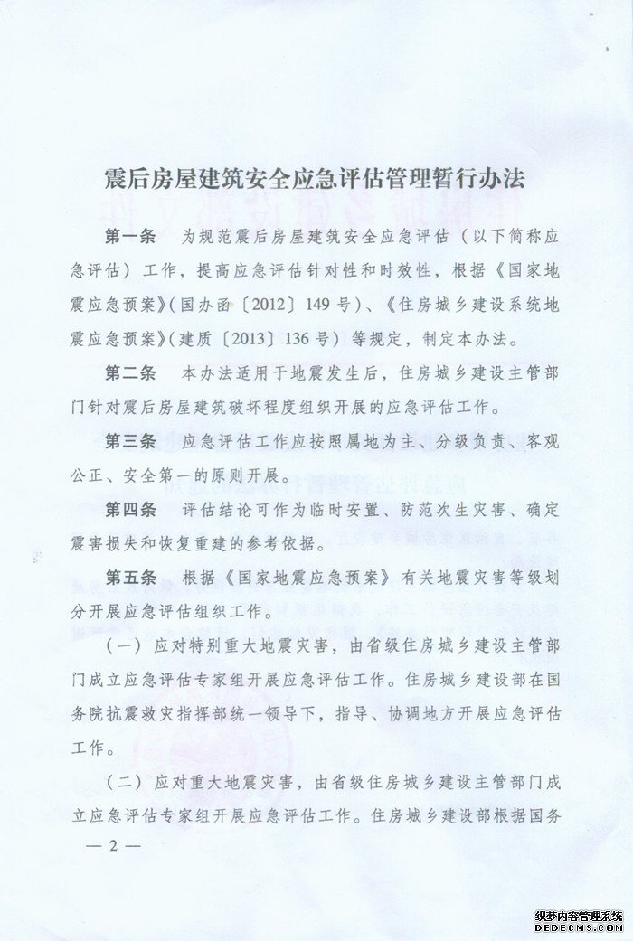 为进一步提升住房城乡建设系统地震应急响应能力,做好我市震后房屋建筑安全应急评估工作,现将《住房城乡建设部关于印发震后房屋建筑安全应急评估管理暂行办法的通知》转发给你们,请结合本地区实际遵照执行。