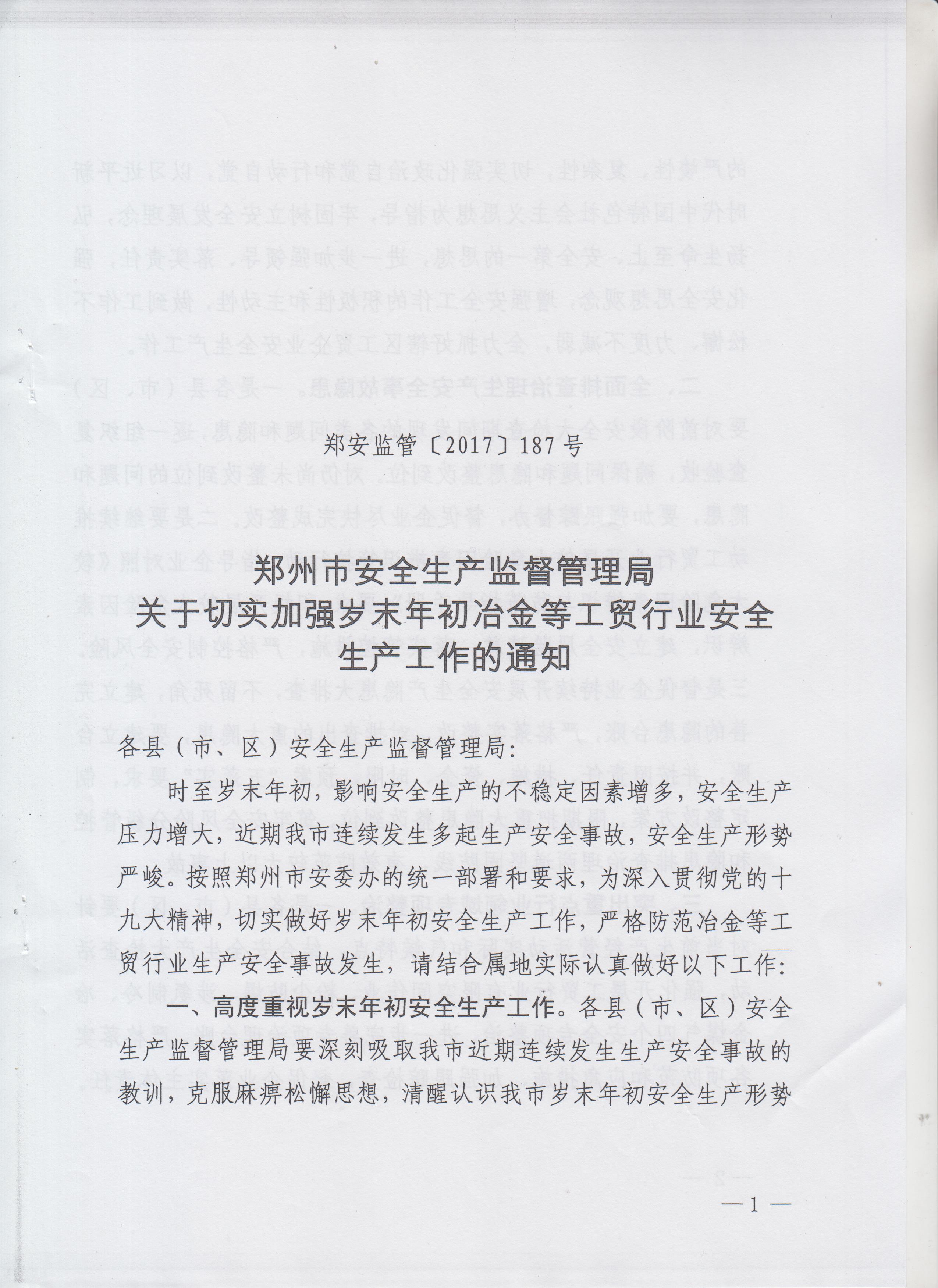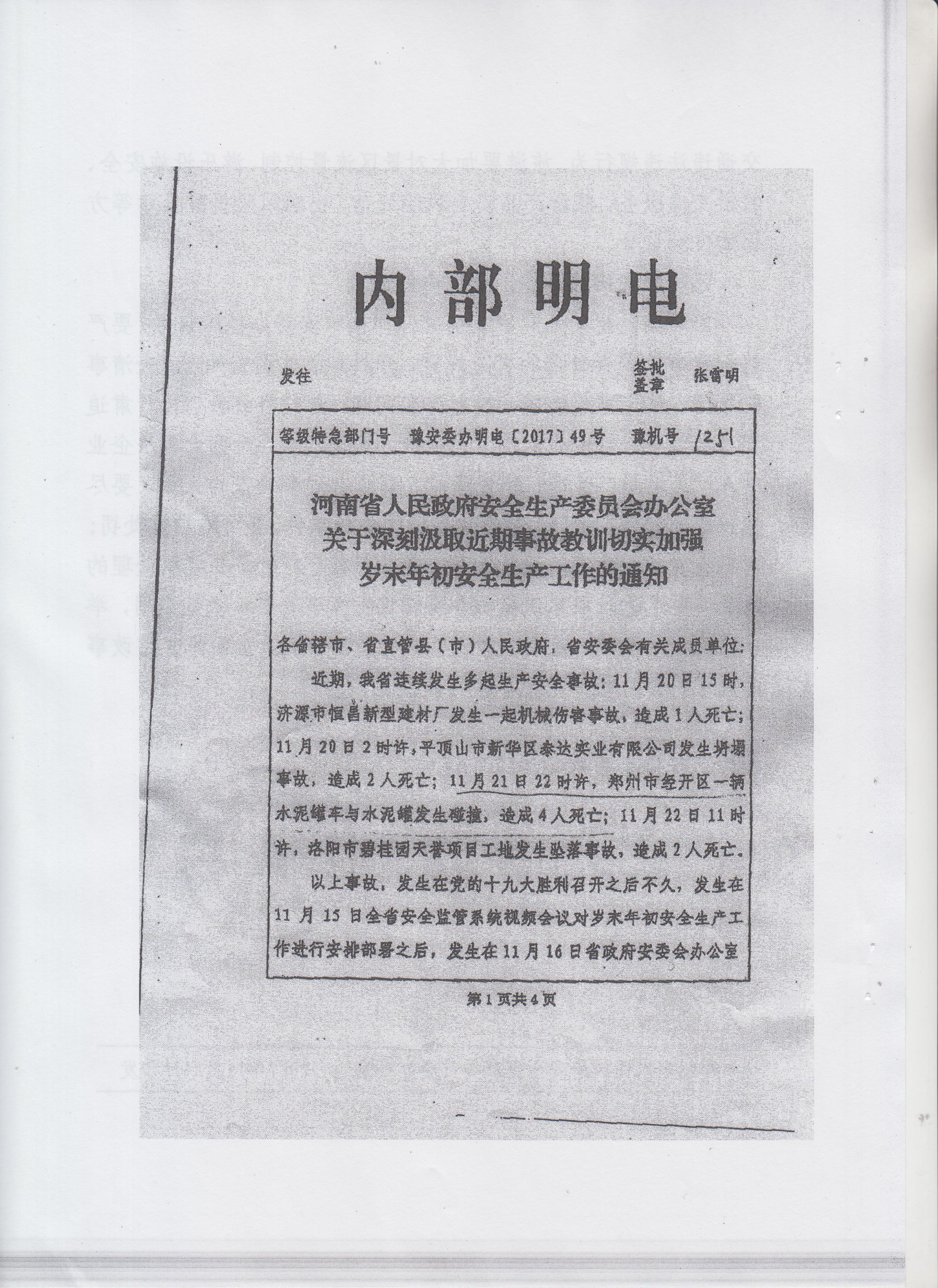 关于转发豫安委办明电【2017】49号文件、郑安监管【2017】187号文件、郑安委办【2017】98号文件