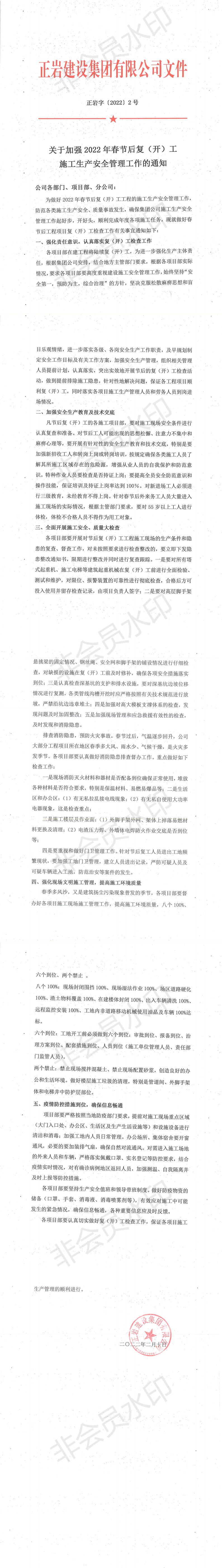 2022年春节后复(开)工施工安全生产管理工作的通知